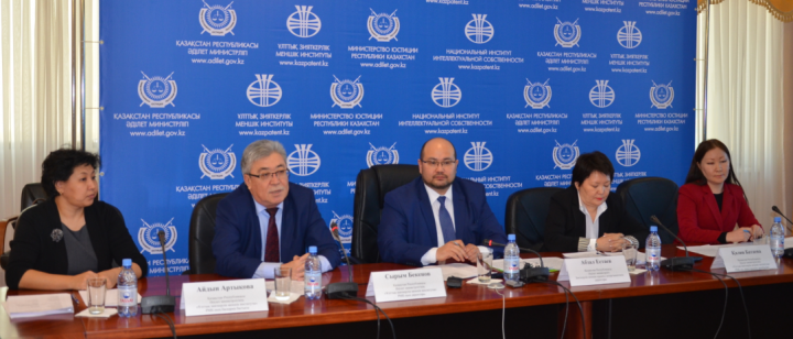 В пресс-конференции приняли участие Директор департамента по правам интеллектуальной собственности Министерства юстиции Абзал Естаев и директор Национального института интеллектуальной собственности Сырым Бекенов.
