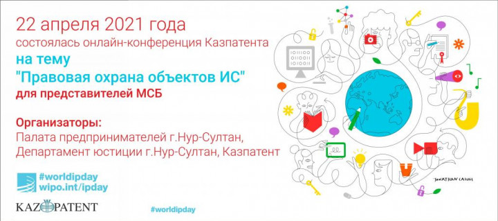 A conference on IP legal protection for representatives of SMEs with the participation of speakers from Kazpatent took place today, on April 22, 2021. The event was held on the platform of the Chamber of Entrepreneurs of Nur-Sultan with a live broadcast in the public group "Business in Nur-Sultan" (Facebook), which has more than 8 thousand participants. The Conference was opened by Talgat Shakhabayev, Chief Specialist, Intellectual Property Rights Division, Department of Justice, Nur-Sultan. The Conference is dedicated to the celebration of World IP Day.