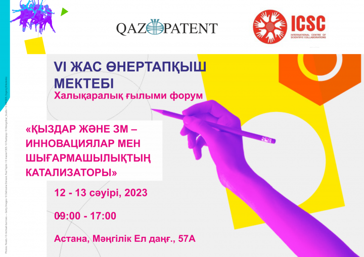 2023 жылғы 12 сәуірде Qazpatent алаңында Жас өнертапқыштың VI мектебі аясында ұйымдастырылған «Қыздар және инновациялар мен шығармашылықтың ИС – катализаторы» халықаралық ғылыми форумы өтеді.