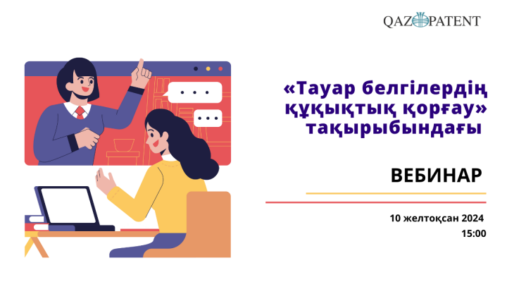 10 желтоқсанда сағат 15:00-де Qazpatent Astana IT University студенттері мен қызметкерлері үшін «Тауар белгілердің құқықтық қорғау» тақырыбында вебинар өткізеді.