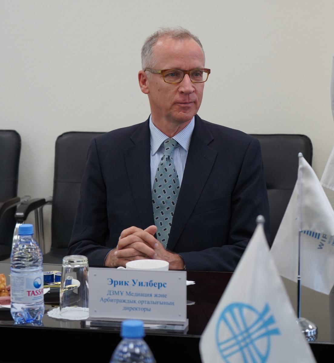 В рамках рабочего визита обсуждались вопросы, связанные с применением медиации по спорам в области защиты прав на объекты интеллектуальной собственности. Г-на Уилберса интересовали вопросы касательно количества судебных дел в области нарушения прав интеллектуальной собственности по Республике Казахстан, предмета и характера данных разбирательств: в частности, по каким объектам ИС и вытекают ли данные споры из договорных отношений.