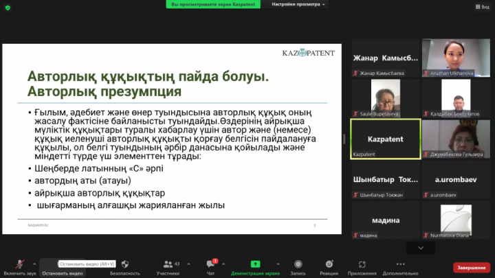 4-5 мамырда Kazpatent М.Х. Дулати атындағы Тараз өңірлік университетінің профессор-оқытушылар құрамы мен студенттері үшін «Зияткерлік меншік құқықтарын қорғау» тақырыбында оқыту вебинарын өткізді.
