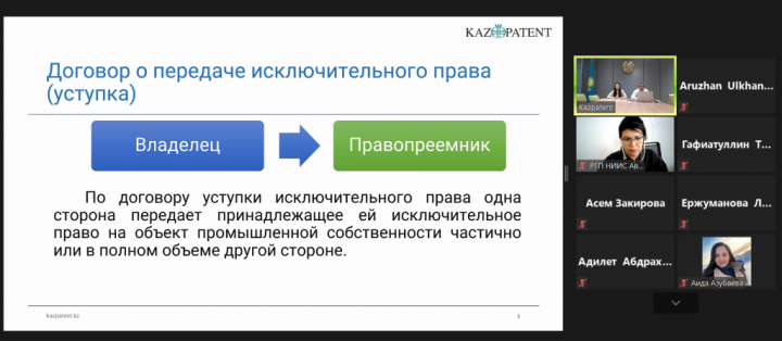 12 сәуірде Kazpatent Құрманғазы атындағы Қазақ ұлттық консерваториясының профессор-оқытушылар құрамы мен студенттері үшін «Зияткерлік меншік құқықтарын қорғау» тақырыбында оқыту вебинарын өткізді.