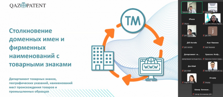 1 шілдеде Qazpatent Әділет департаменттері мен Экономикалық тергеу департаменттерінің қызметкерлері үшін «Домендік атаулар мен тауар белгілері арасындағы қақтығыс» тақырыбында вебинар өткізді.