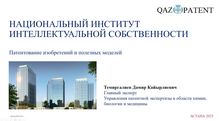 4 қыркүйек сағат 15:00-де Qazpatent Халықаралық қазақ-түрік университеті Ходжа Ахмет Ясави атындағы және Ұлттық ғылыми травматология және ортопедия орталығының қызметкерлері үшін «Зияткерлік меншік объектілерін құқықтық қорғау» тақырыбында вебинар өткізді.