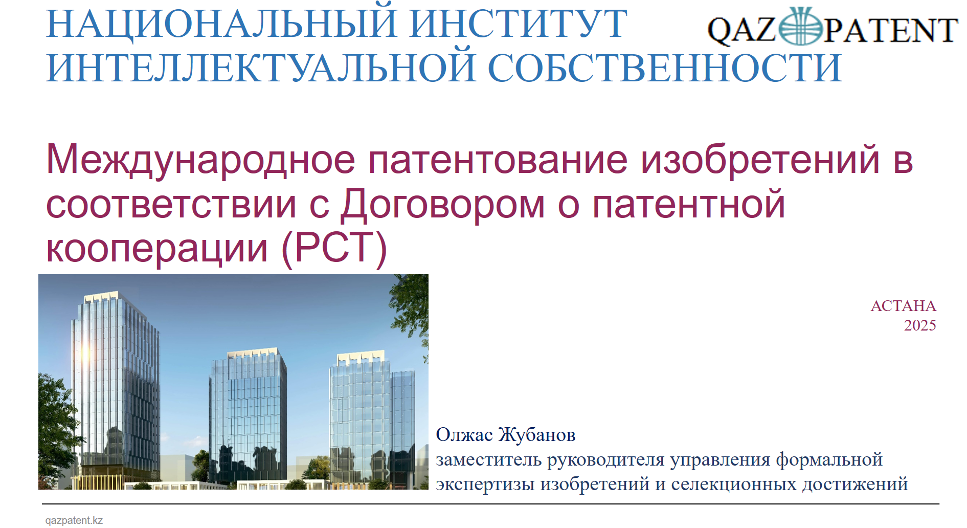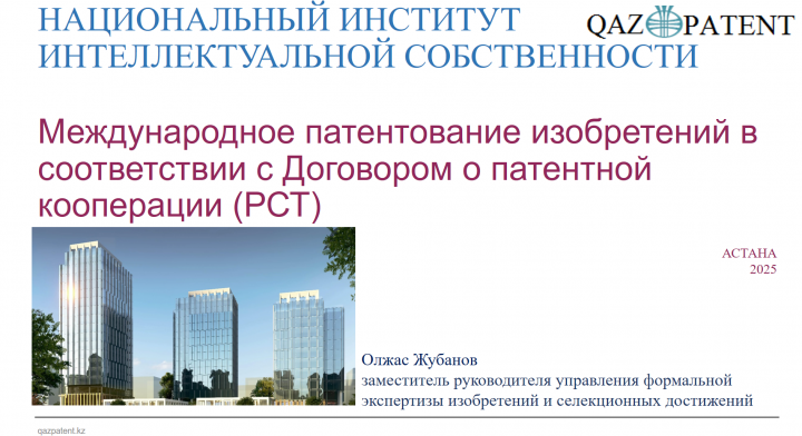 Вебинар аясында патенттеу, өнертабыстар мен пайдалы модельдерді патенттеу, Патенттік кооперация туралы шартқа сәйкес өнертабыстарды патенттеу, сондай-ақ Еуразиялық патент конвенциясына сәйкес өңірлік патенттеу мәселелері талқыланды.
