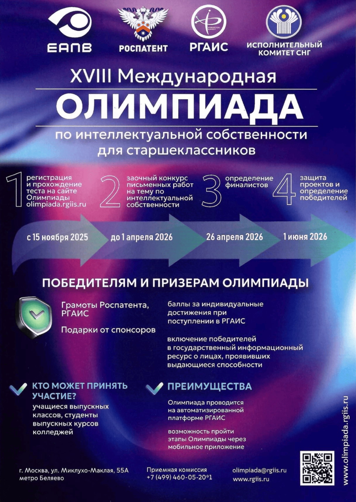 Жоба туралы толық ақпарат Олимпиаданың ресми сайтында орналастырылған: https://olimpiada.rgiis.ru (қатысу мәселелері бойынша пошта: olimpiada@rgiis.ru).