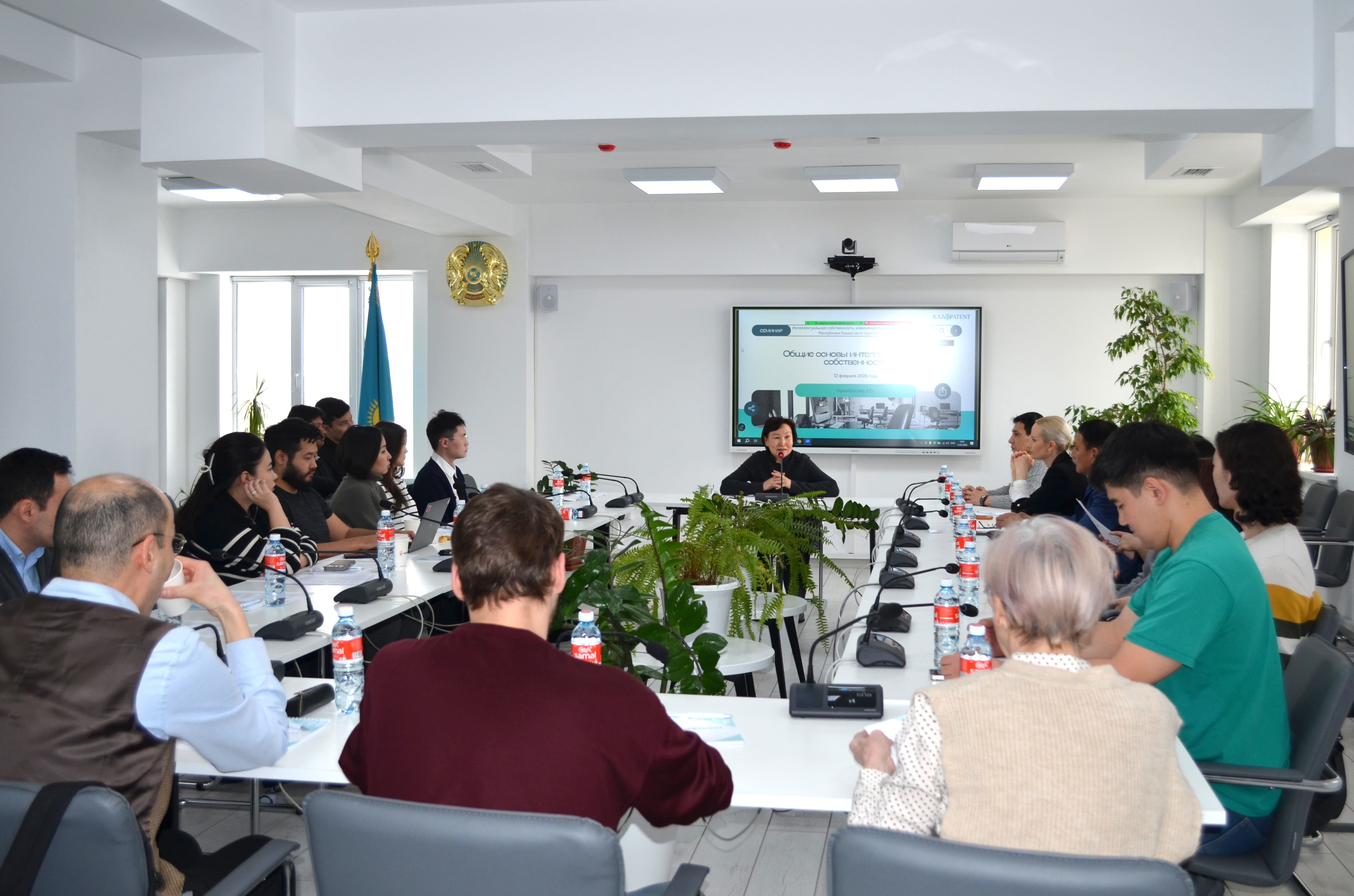 2026 жылғы 12 ақпанда Алматыда Kazpatent филиалының Оқу орталығы ұйымдастырған "Зияткерлік меншік: Қазақстан Республикасының заңнамасына өзгерістер мен толықтырулар және оларды қолдану практикасы" тақырыбындағы оқыту семинары өтті. Іс-шараға ғылыми және білім беру ұйымдарының өкілдері, патенттік сенім білдірілген өкілдер және зияткерлік меншік саласындағы мамандар қатысты.