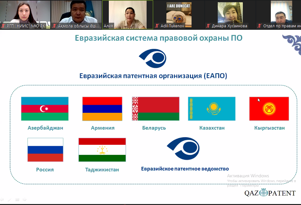 Экспертами Qazpatent были раскрыты вопросы по правовой охране промышленных образцов, региональной охране промышленных образцов в рамках Евразийской патентной конвенции.