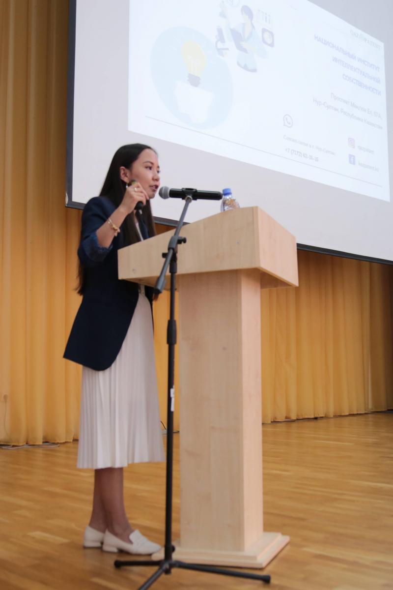 Спикерами на мастер-классе выступили Срайыл Замира Болатханкызы – руководитель Управления подготовки патентной документации и публикации, а также Ұлханова Аружан Асылбекқызы – главный эксперт Центра по правам интеллектуальной собственности (IPR Center).