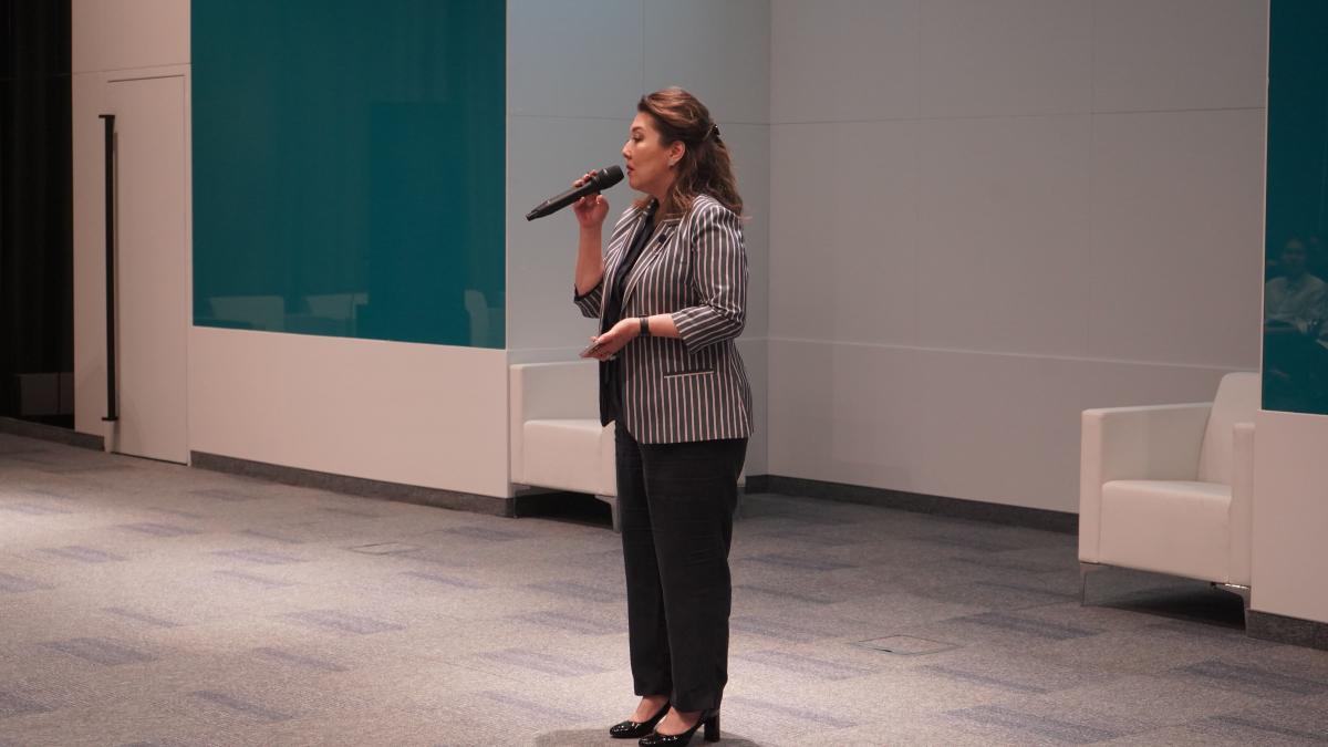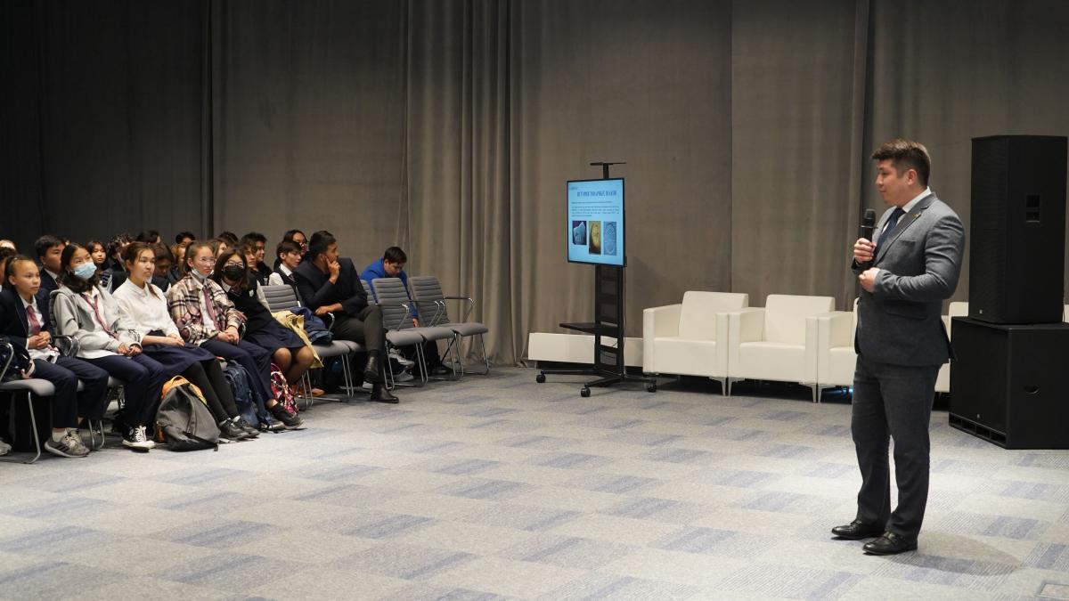 Руководитель Управления развития и международного сотрудничества Инкара Шертышева рассказала школьникам о проводимых Казпатентом мероприятиях, направленных на стимулирование изобретательской активности среди талантливой молодёжи.