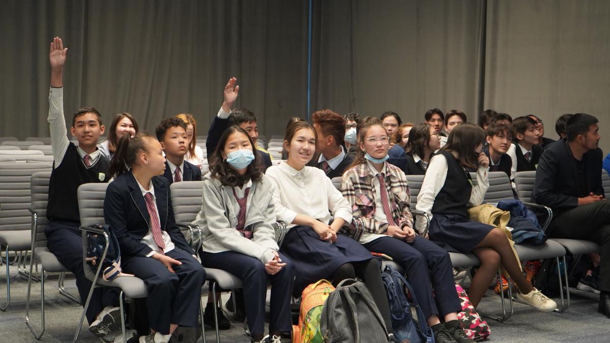 Мероприятие с участием школьников 8-11 классов началось с показа специального выпуска Агентства Хабар о конкурсе школьников: «Продолжение большого пути».