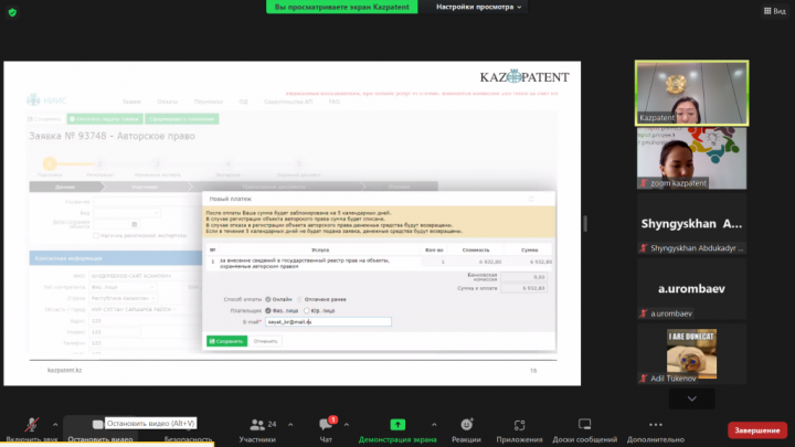 27 апреля Kazpatent провел обучающие вебинары для профессорско-преподавательского состава и студентов Атырауского университета им. Х. Досмухамедова, а также сотрудников региональных департаментов юстиции и предпринимателей.
