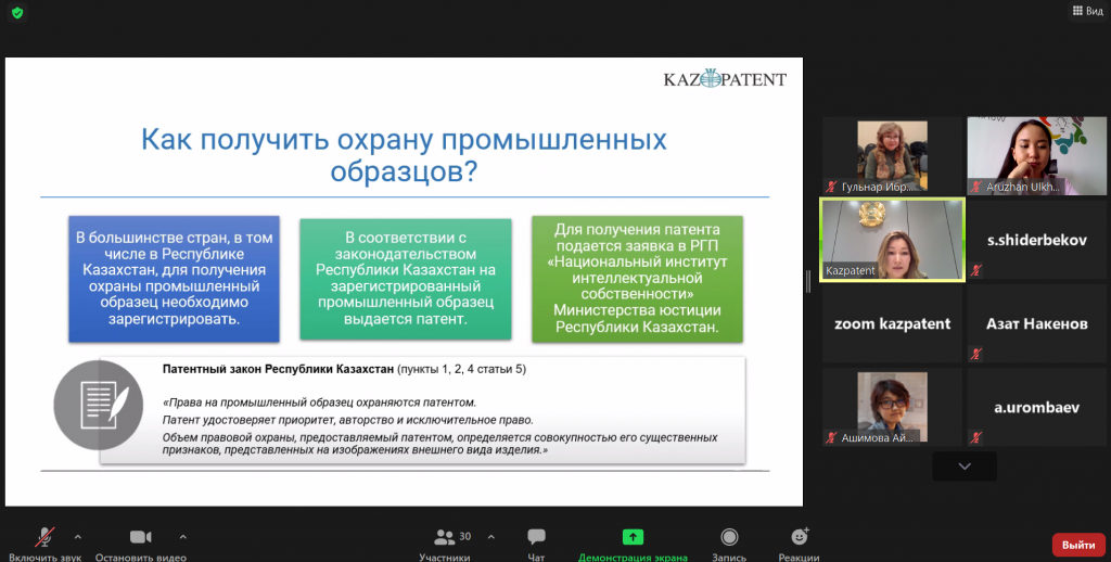 26 апреля Kazpatent провел обучающий вебинар для профессорско-преподавательского состава и студентов Международной образовательной корпорации.