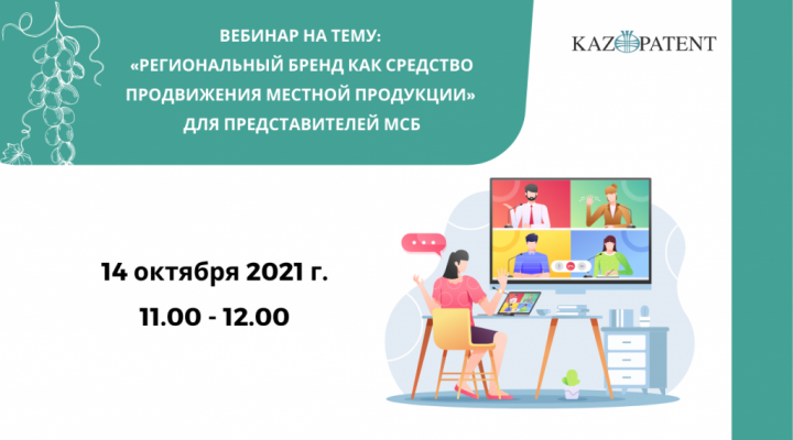 Сегодня, 14 октября 2021 года Казпатент провел вебинар на тему: «Региональный бренд как средство продвижения местной продукции», который был нацелен на ознакомление местных исполнительных органов с правовой охраной и условиями регистрации объектов наименований мест происхождения товаров, как объекта интеллектуальной собственности.