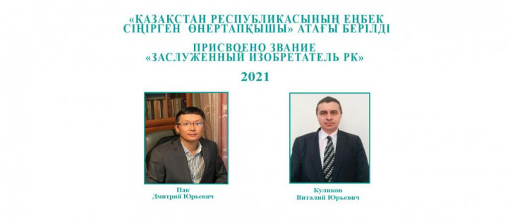 На основании решения конкурсной комиссии приказом директора РГП «Национальный институт интеллектуальной собственности» Министерства юстиции №147 НҚ от 02 июня 2021 года, звание «Заслуженный изобретатель Республики Казахстан - 2021» присвоено двум кандидатам, набравшим наибольшее количество баллов: Пак Дмитрию Юрьевичу, кандидату технических наук, исполняющему обязанности доцента Карагандинского технического университета и Куликову Виталию Юрьевичу, кандидату технических наук, профессору кафедры «Нанотехнологии и метталлургия» Карагандинского технического университета.