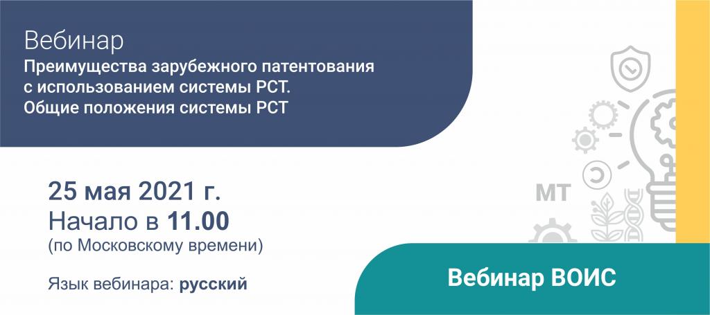 Данный вебинар является первым из серии вебинаров по системе PCT, запланированных в 2021 году, и он посвящен обзору имеющихся способах зарубежного патентования, их преимуществах и недостатках, в том числе преимуществах патентования по системе РСТ.