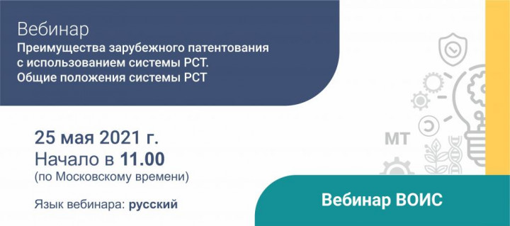 25 мая с 11.00 до 12.00 поМосковскому времени состоится бесплатный вебинар ВОИС: Преимущества зарубежного патентования с использованием системы РСТ. Общие положения системы РСТ.