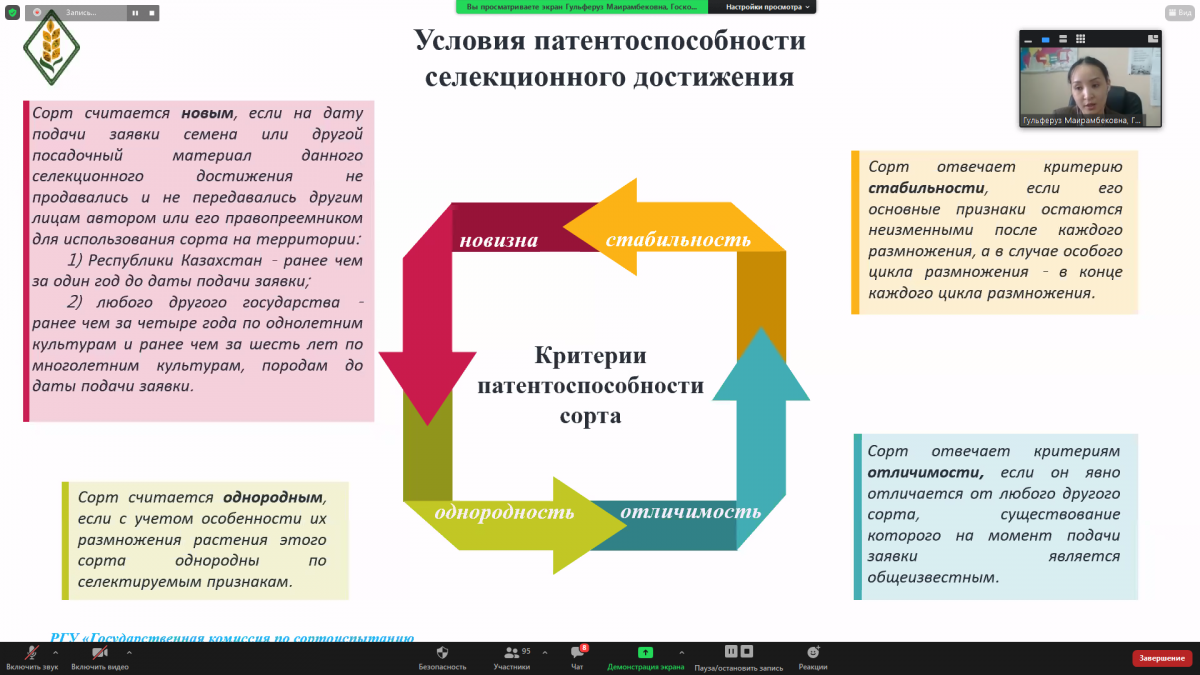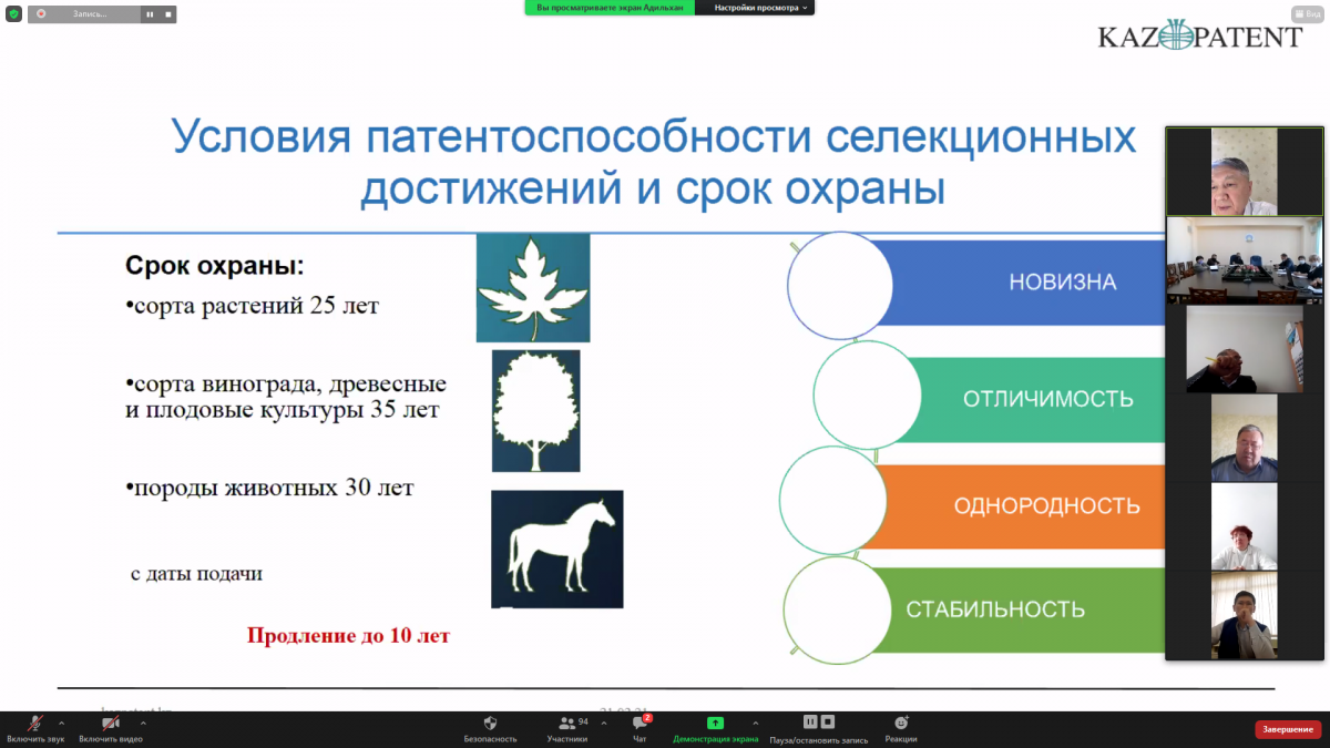 Казпатент совместно с Министерством сельского хозяйства (МСХ) провели вебинар для специалистов сельского хозяйства по вопросам правовой охраны селекционных достижений. Мероприятие было приурочено к празднованию Международного дня интеллектуальной собственности.