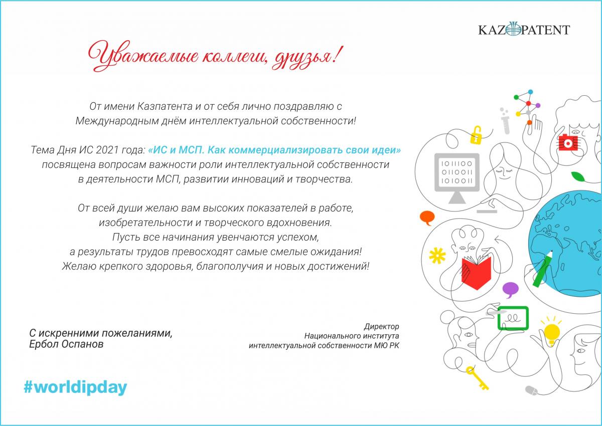 Поздравление директора Казпатента с Международным днём интеллектуальной собственности