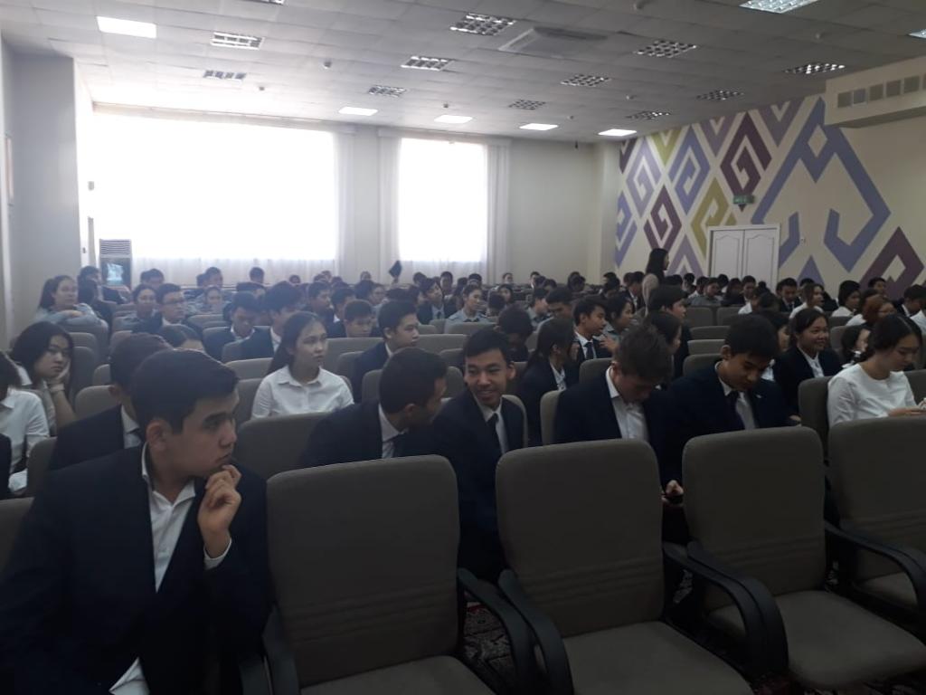 Главный специалист Учебного центра Б. Назаров дал учащимся общую информацию об объектах интеллектуальной собственности и об авторском праве. Кроме того, проведена агитационная работа по участию учеников данной школы в конкурсе «Nazarbayev Fund Schools Challenge» и на Евразийской патентной универсиаде «Взгляд в будущее».
