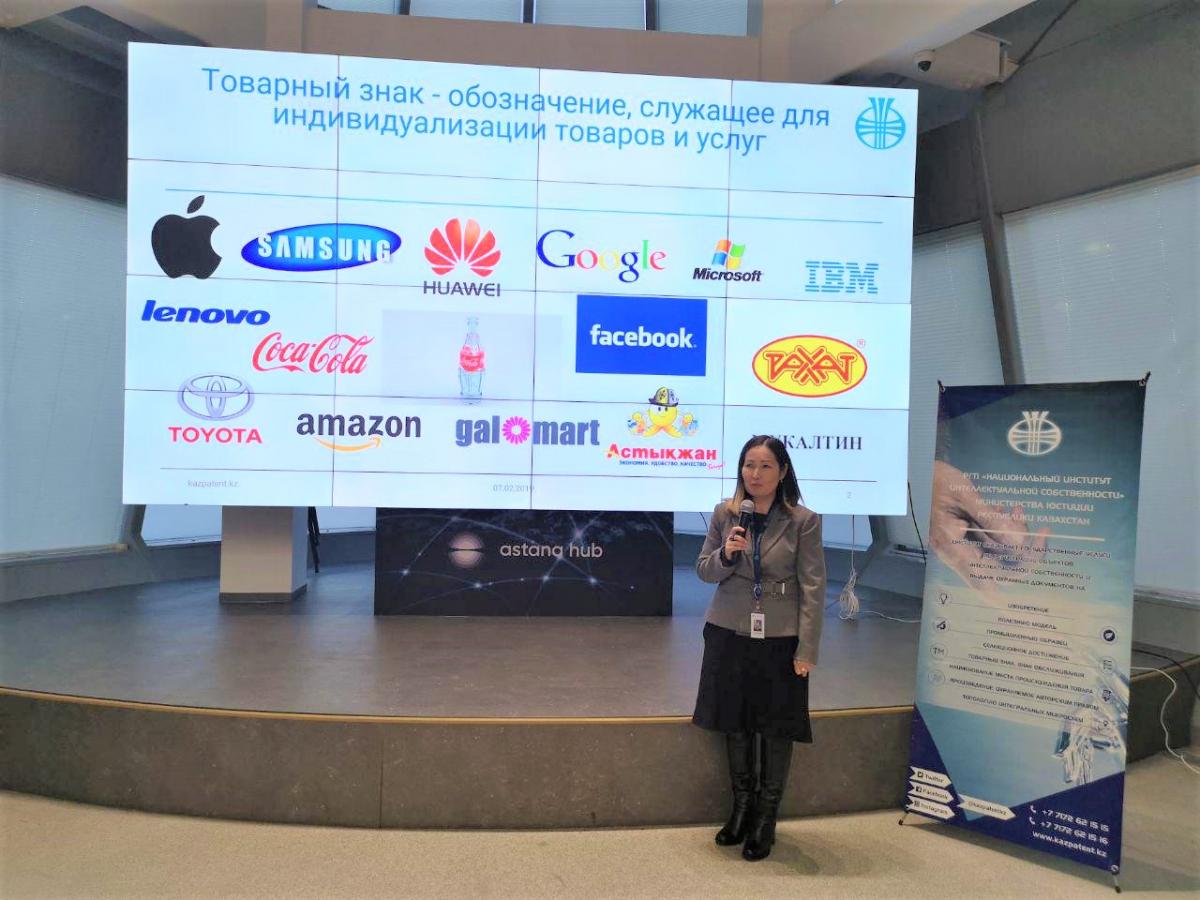 Со следующей презентацией на тему «Правовая охрана товарных знаков и НМПТ» выступила начальник Департамента товарных знаков, наименований мест происхождения товаров и промышленных образцов РГП НИИС А. Казиева. В ходе выступления спикер предоставила детальную информацию касательно процедур регистрации товарных знаков на национальном и международном уровне. С презентацией на тему «Правовая охрана промышленных образцов» выступила начальник управления промышленных образцов РГП НИИС Л. Салкен. С заключительной презентацией на тему «Авторское право в РК» выступила начальник Управления авторского права А. Тайшева, которая подробно рассказала про основы авторского права в Казахстане.