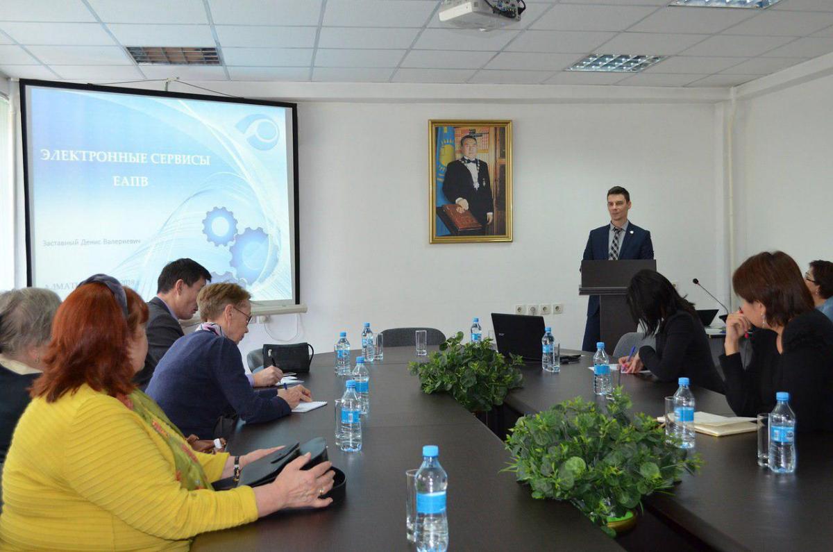На встрече представители ЕАПВ ознакомили участников с вопросами использования электронных сервисов ЕАПВ, а также возможностями и преимуществами двустороннего электронного обмена корреспонденцией с ЕАПВ.