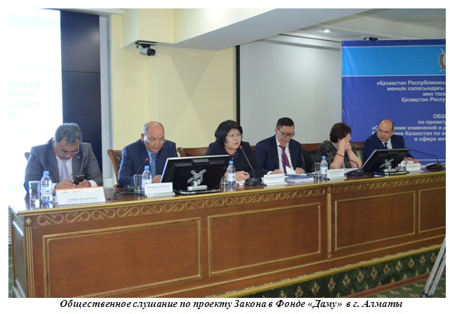 30 сентября т.г. в Фонде предпринимательства «Даму» г. Алматы в 15.00 состоялось Общественное слушание по проекту Закона Республики Казахстан «О внесении изменений и дополнений в некоторые законодательные акты Республики Казахстан по вопросам совершенствования законодательства в сфере интеллектуальной собственности».
