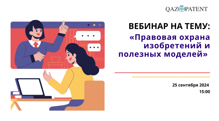 25 сентября Qazpatent проведет вебинар для сотрудников Департаментов юстиции Республики Казахстан, Департаментов внутренних дел Республики Казахстан и Департаментов экономических расследований Республики Казахстан на тему «Правовая охрана изобретений и полезных моделей».