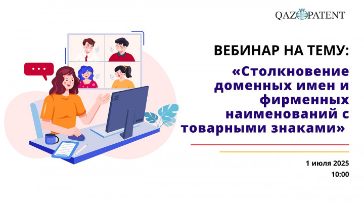 1 июля Qazpatent проведет вебинар для сотрудников Департаментов юстиции Республики Казахстан и Департаментов экономических расследований на тему «Столкновение доменных имен и фирменных наименований с товарными знаками».
