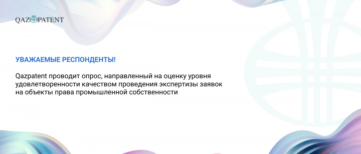 Qazpatent проводит опрос, направленный на оценку уровня удовлетворенности качеством проведения экспертизы заявок на объекты права промышленной собственности.